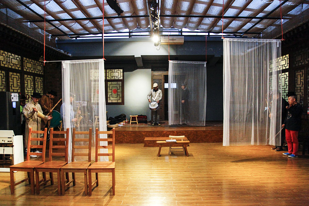 排练场地在位于崔各庄的一个大四合院中,院子是方旭提供给演员们排练的。为了营造和剧院接近的灯光效果,还特意装上了舞台灯。