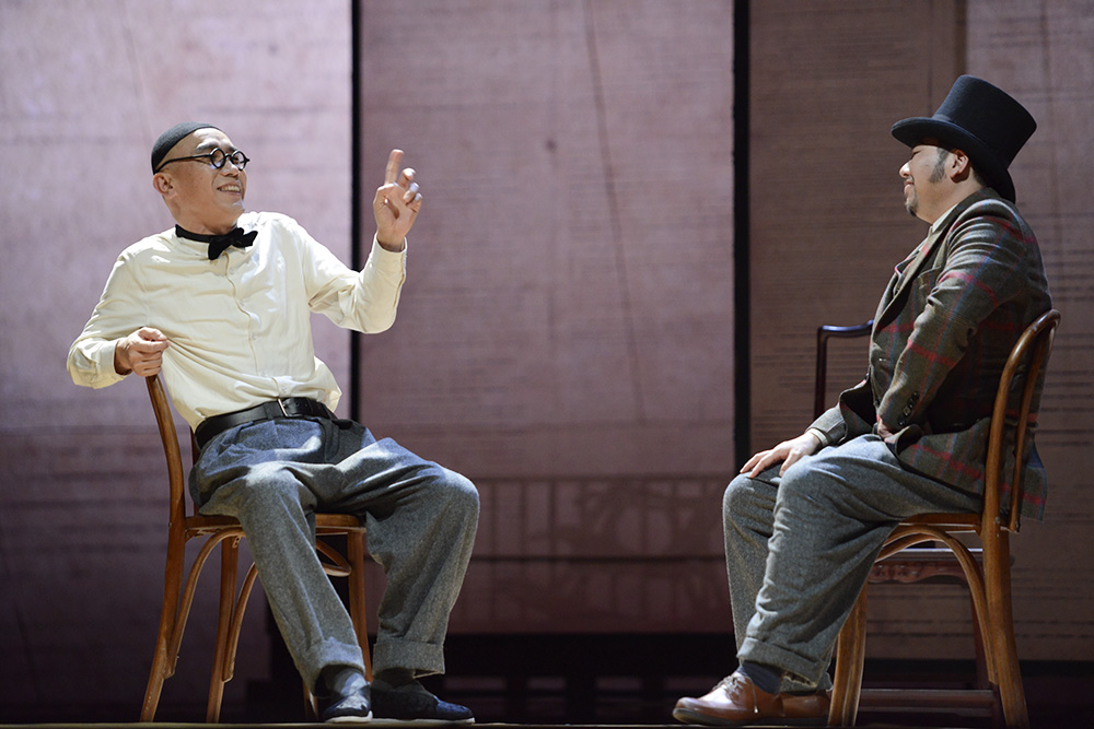 直到改完《离婚》,我才突然意识到,老舍作品改成舞台作品需要找到一种呈现方式。所以,在《离婚》里我选用了两个男人来叙述整个故事,两个男人在三个角色之间变换。舒乙先生曾说这是老舍作品中最神奇的改编,他说没想到我会这么改。《二马》也同样存在这个问题。我们必须给《二马》这部作品找到一种呈现方式。