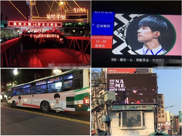 据悉,易烊千玺生日这天,世界各地包括内地、美国、英国、西班牙、日本、越南、韩国等在内的十多个国家的“千纸鹤”(易烊千玺粉丝名称),在各地的地铁站、公车都可见粉丝包下灯箱或LED屏幕,张贴、播放庆生影片。