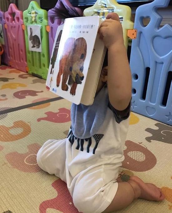 林志颖通过微博晒儿子看书的照片,并写道:“最近这个小朋友很爱这本故事书,看着看着想钻进书里头,小朋友看书要记得保持距离喔!”
