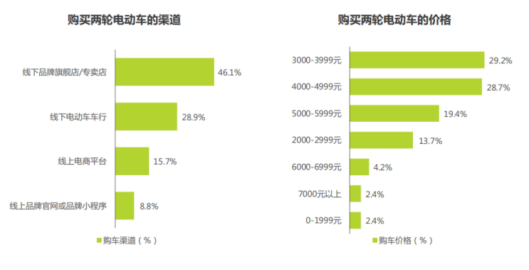 而在购车过程中,29.2%的消费者选择购买3000元-3999元之间的车型,28.7%的消费者选择4000元-4999元,二者合计共占57.9%。换句话说,九号主打的5000元及以上价位段,并不是消费者选择最多的。