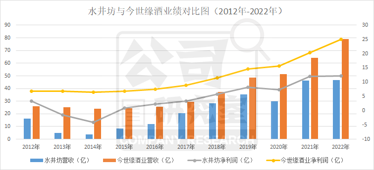 可以看出,无论在在应对行业黑天鹅事件,还是在应对长达3年的新冠疫情上,今世缘始终保持了比较稳健的业绩增长,而水井坊则出现较大波动,2013、2014年出现连续亏损,一度面临股票退市风险。