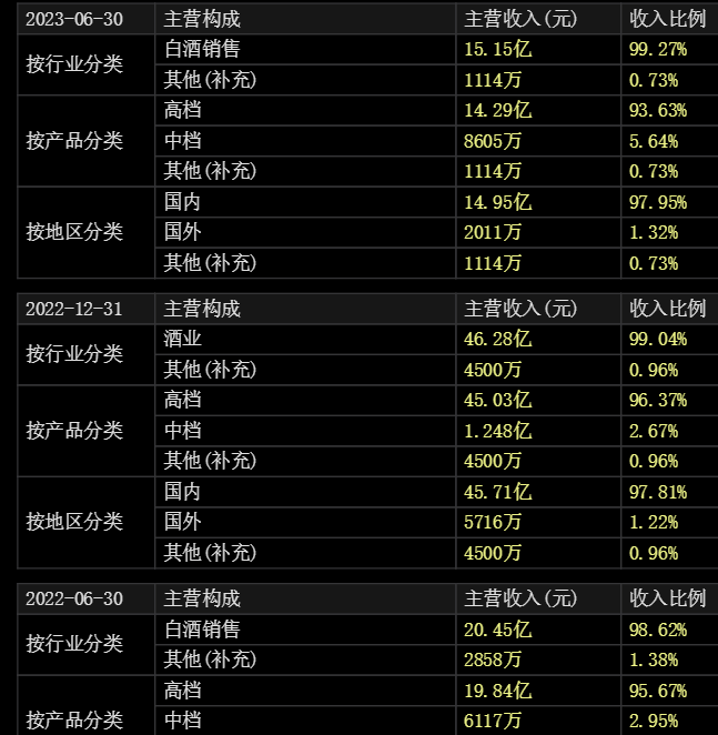 如上文所述,从其产品营收占比来看,其近年推出的千元以上价位的新品,似乎并没有引起市场热烈响应,卖得最好的还是300-600价位的次高端酒。