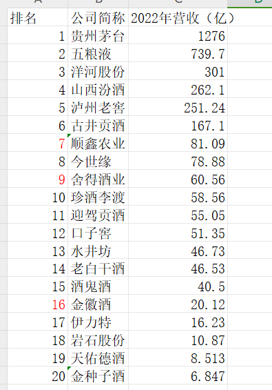 对于一家白酒公司,行业内排名,主要看年度营收;资本市场排名,主要看公司总市值。从这两个维度看,水井坊在业内的地位如何呢?