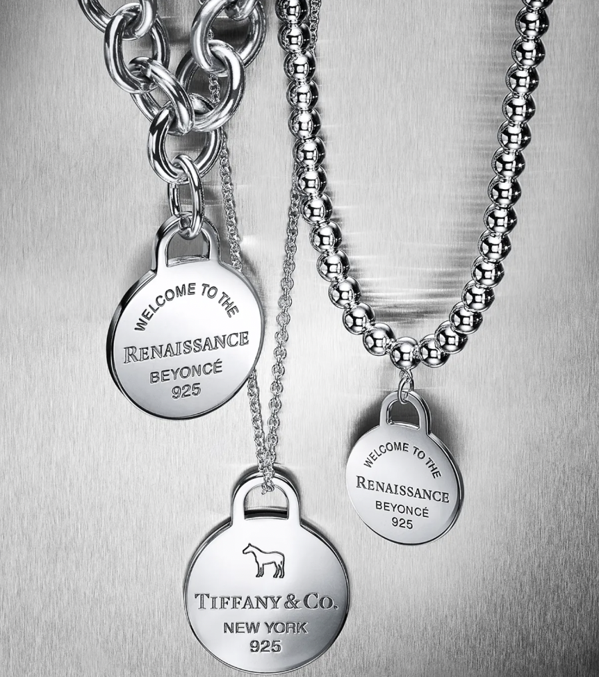 近日,为庆祝纪念天后Beyoncé的RENAISSANCE 世界巡回演唱会,Tiffany &Co.推出Beyoncé x Return to Tiffany 联名系列首饰,本次特别系列在项链吊坠上刻有巡回演唱会的邀请字样,以及 Beyoncé姓名及Tiffany &Co.品牌标识,并采用 925纯银材质打造。