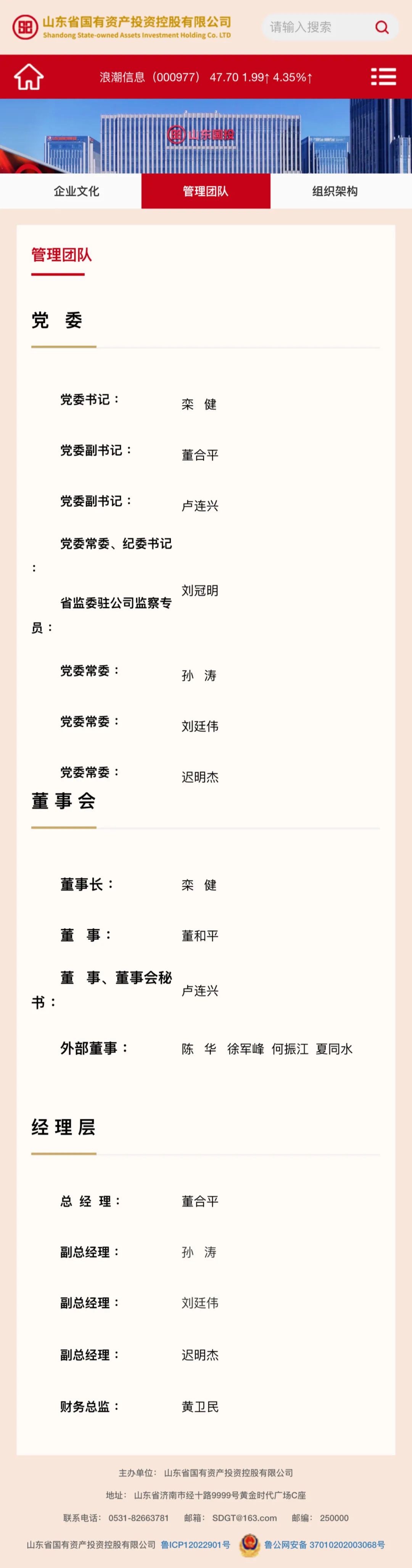 山东省属企业人事调整仍在继续。经济导报记者最新获悉,8月2日,山东省国有资产投资控股有限公司(下称“山东国投”)官网更新管理团队,董合平出任山东国投党委副书记、董事、总经理。此前,他在山东国投担任党委常委、副总经理。