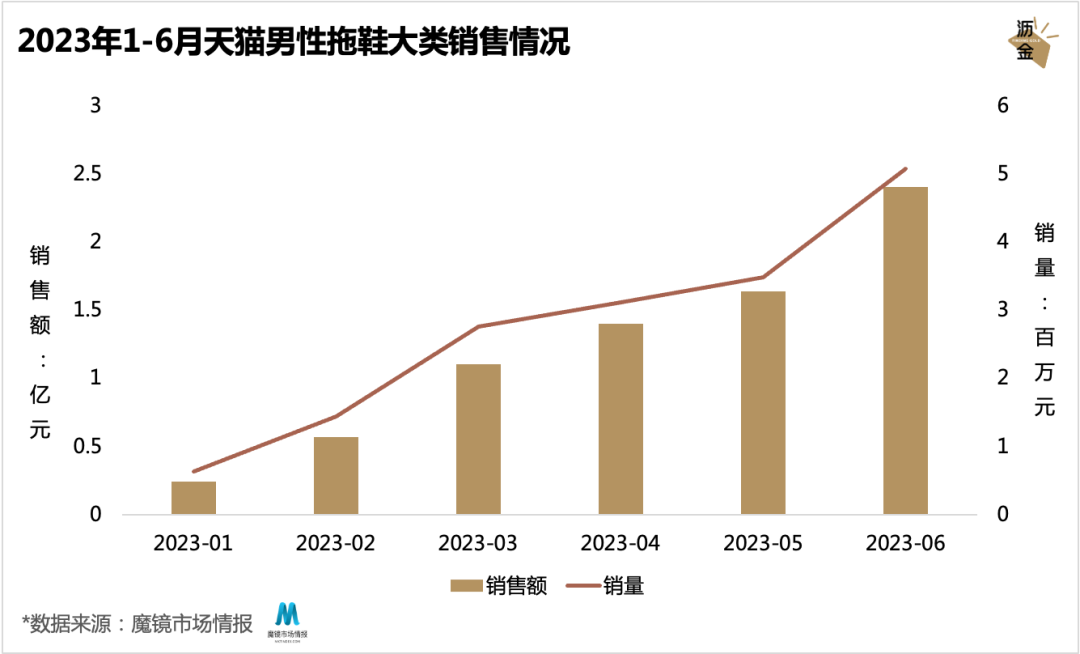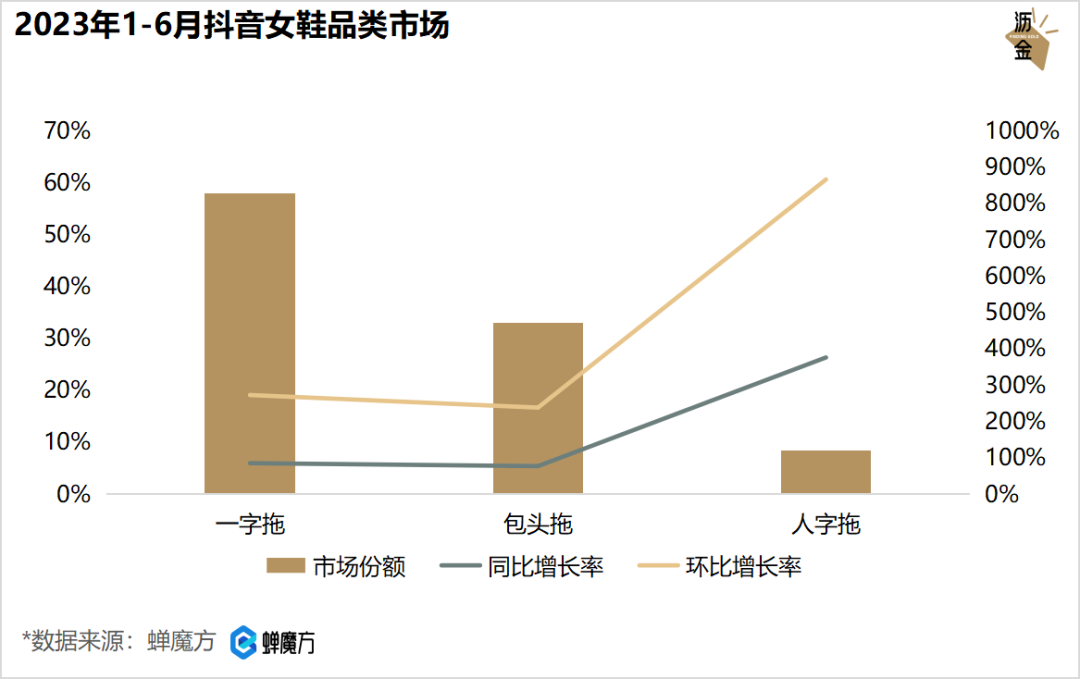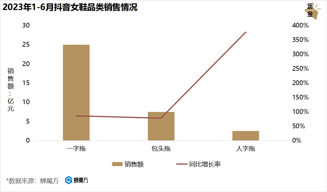 具体看抖音,今年上半年,抖音男拖总销售额超2亿,同比大涨230%,女拖总销售额超20亿,同比涨幅93%,增速迅猛。