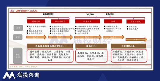 先来简单解释一下“CRDMO”和“CTDMO”模式。新药研发到上市,会经历药物发现、临床前研究、临床研究、上市这几个环节,每个环节都非常耗时耗财,所以才诞生了医药外包公司,大家分工合作,可以大幅缩短新药从研发到上市的时间。