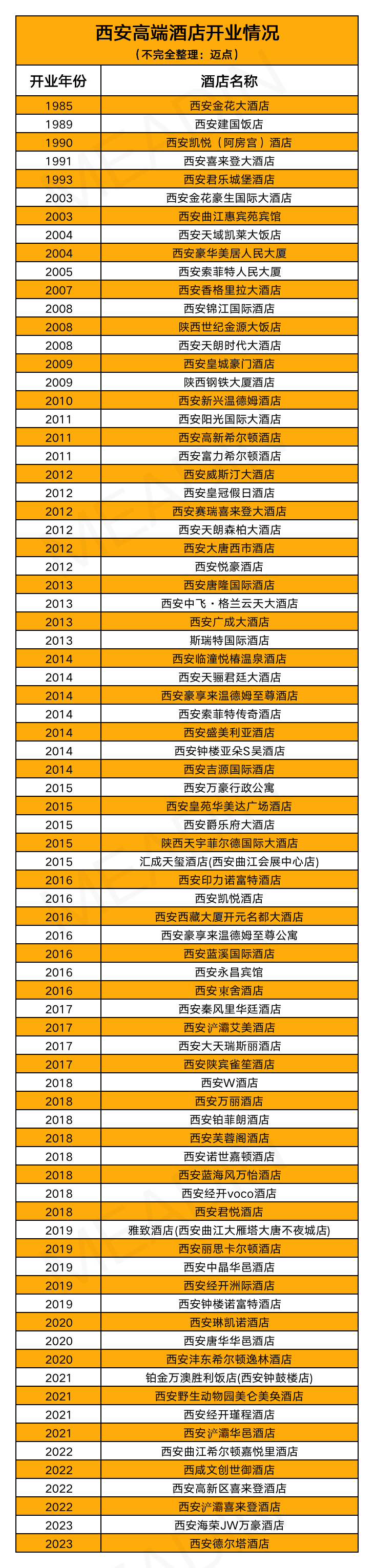 从开业情况来看,西安高端酒店市场有明显的特点: