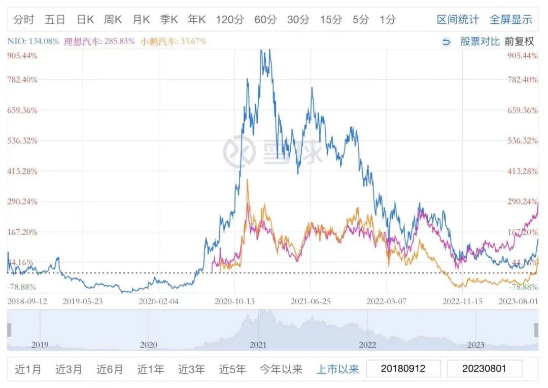 如今,小鹏成了老幺。8月1日盘中,小鹏美股市值只有173.6亿美元左右,在蔚小理中最低,蔚来为259亿美元,理想后来居上,市值达到462.5亿美元。