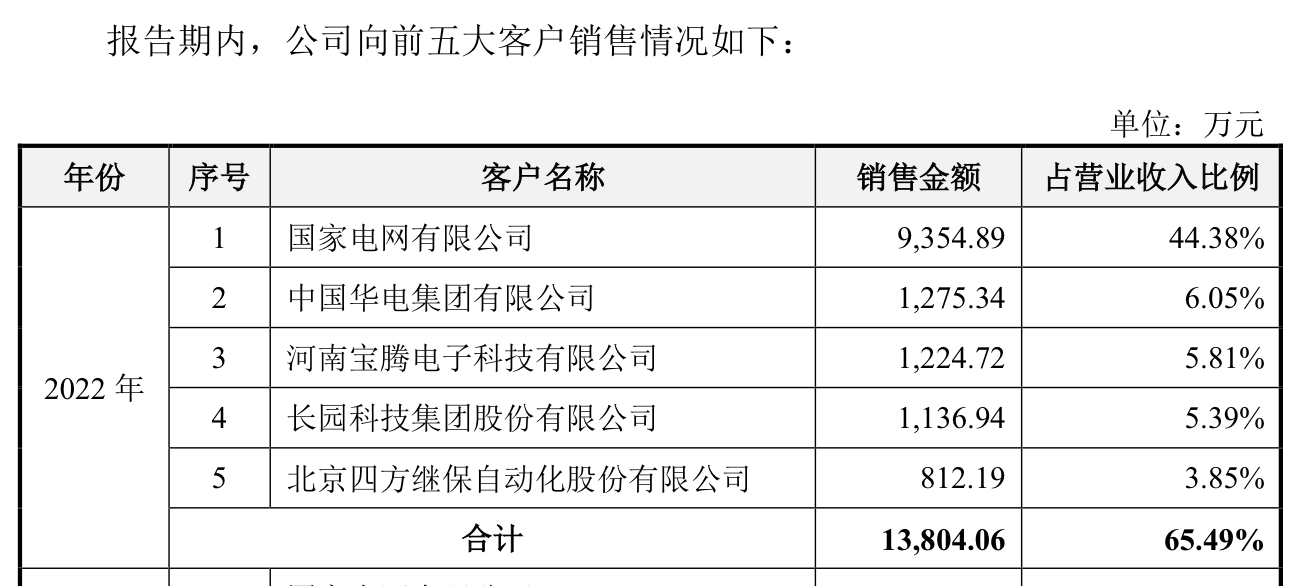 在2020年至2022年里,凝思软件电力行业收入占比分别为99.31%、98.32%和96.87%,公司前五大客户的收入占比合计分别为75.03%、71.07%和65.49%,国家电网的收入占比分别为52.41%、47.39%和44.38%,集中度较高。