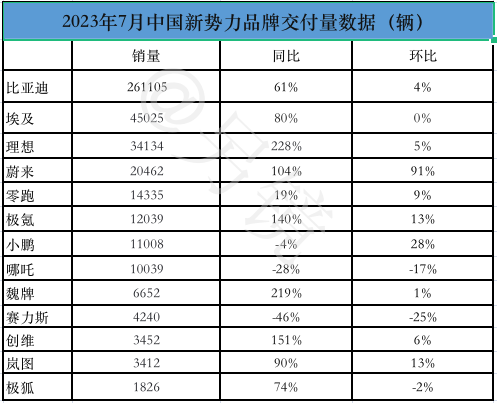 值得注意的是,在7月中国新势力交付量榜单中,多家交付量创历史新高,理想月交付量达3.4万辆, 蔚来首次月交付超过2万辆,小鹏时隔六个月再次过万,交付1.1万辆。