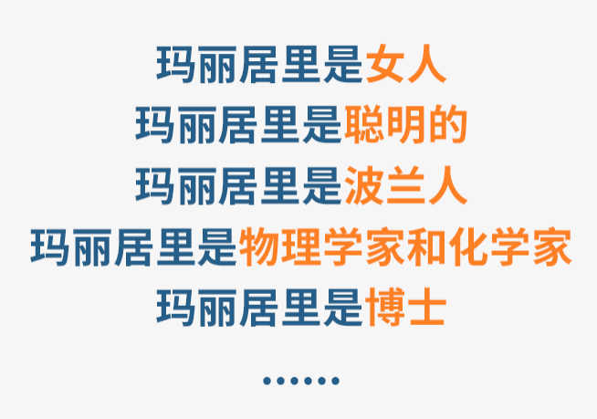 机器可以识别爱因斯坦和德国人、甘地和印度人之间的关系,从而判断出来玛丽居里后应该跟的是国籍信息——“波兰人”,这就是隐含概念的推理能力。