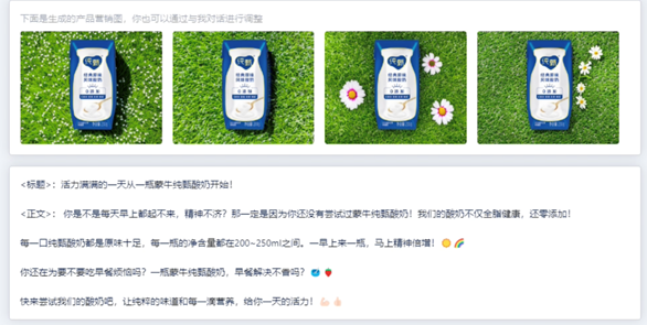 对于品牌来说,只是让产品触达消费者还不够,如何让他们看见产品就会有消费冲动是要在更前端解决的问题。生成式AI可以结合现有消费者对各品类产品的反馈,分析出消费者核心在意的产品因素以及会影响他们购买的条件,以此实现在准备阶段就做好千人千面的营销文案及图片。