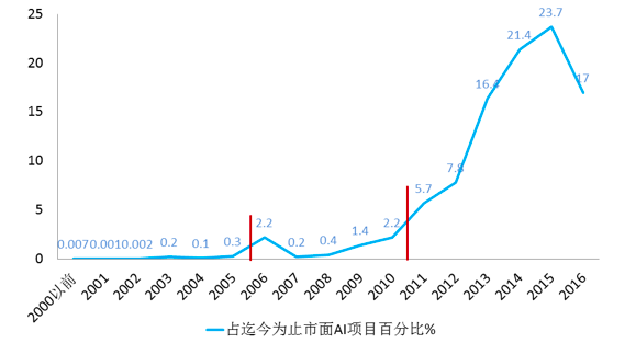 在这些AI项目中之中,人工智能创业项目呈现出极强的应用性特征,有超过88.2%的AI项目参与、或至少面向具体的垂直应用领域。2014年,中国市场的工业机器人销量猛增54%,智能语音交互、指纹、人脸、虹膜识别等产业规模均突破100亿元。