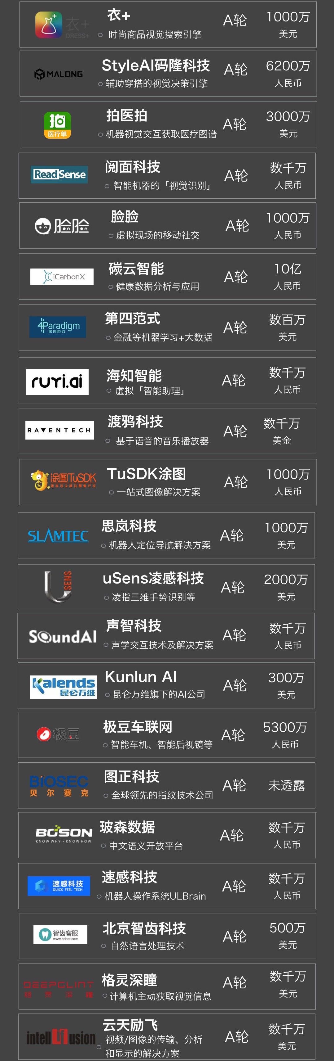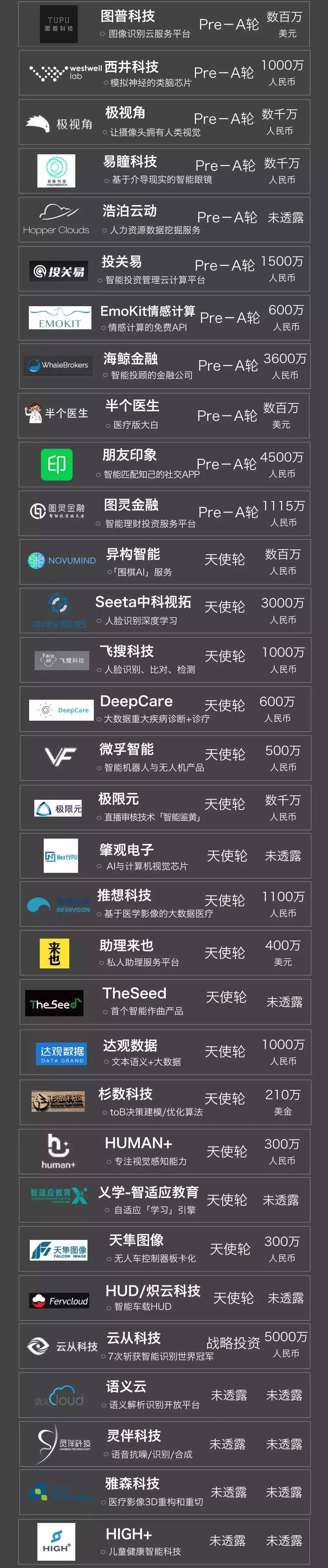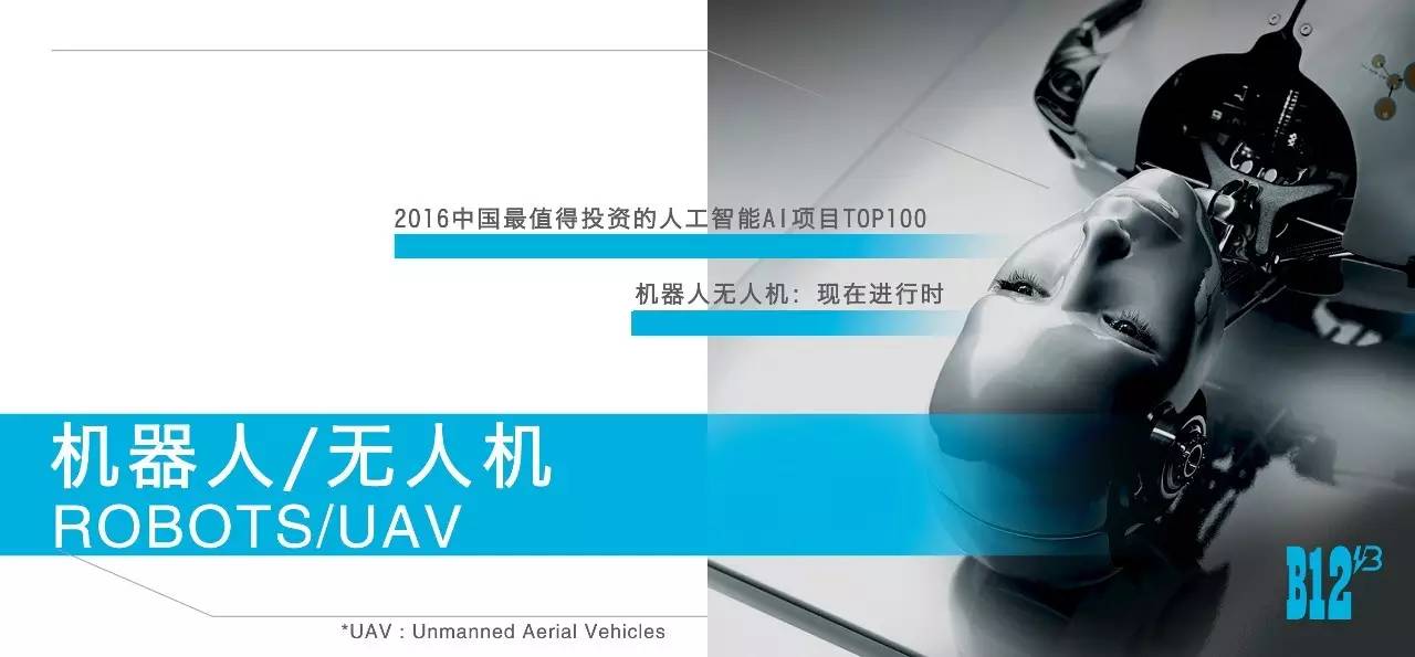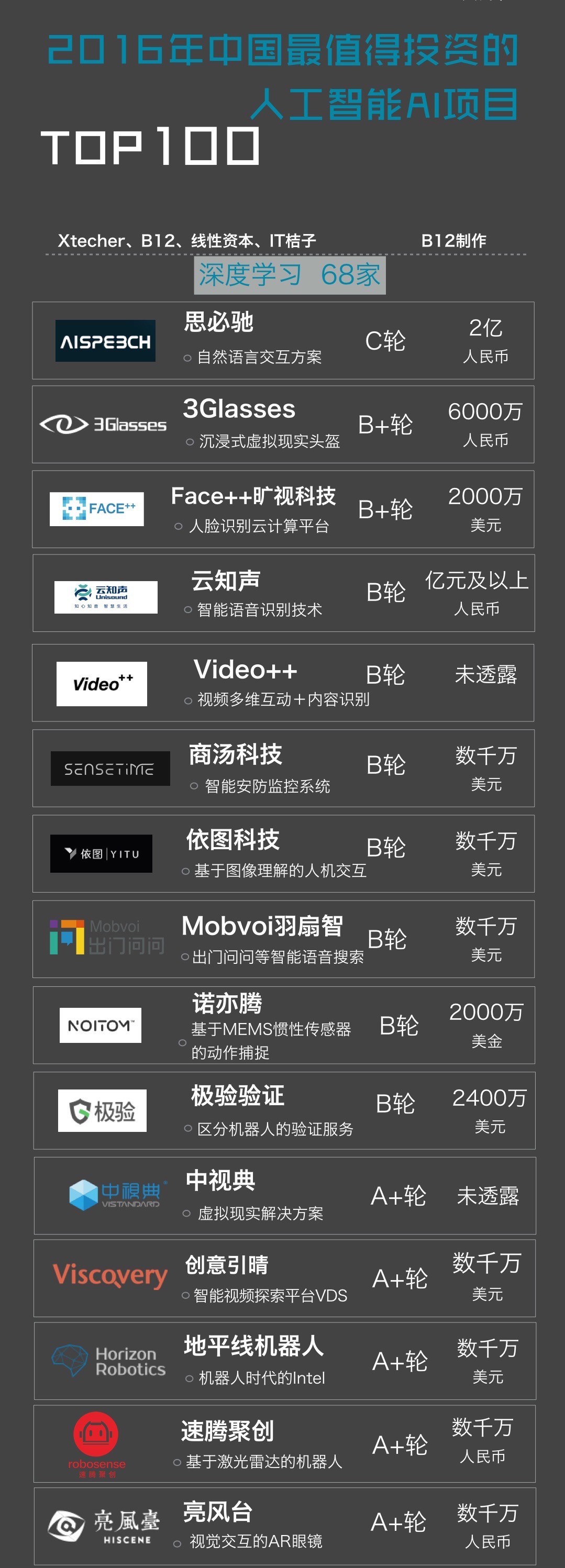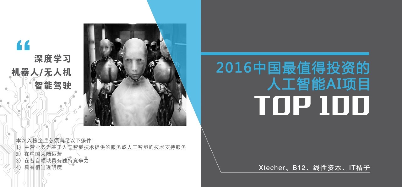 2016中国最值得投资的AI项目TOP100总榜单如下