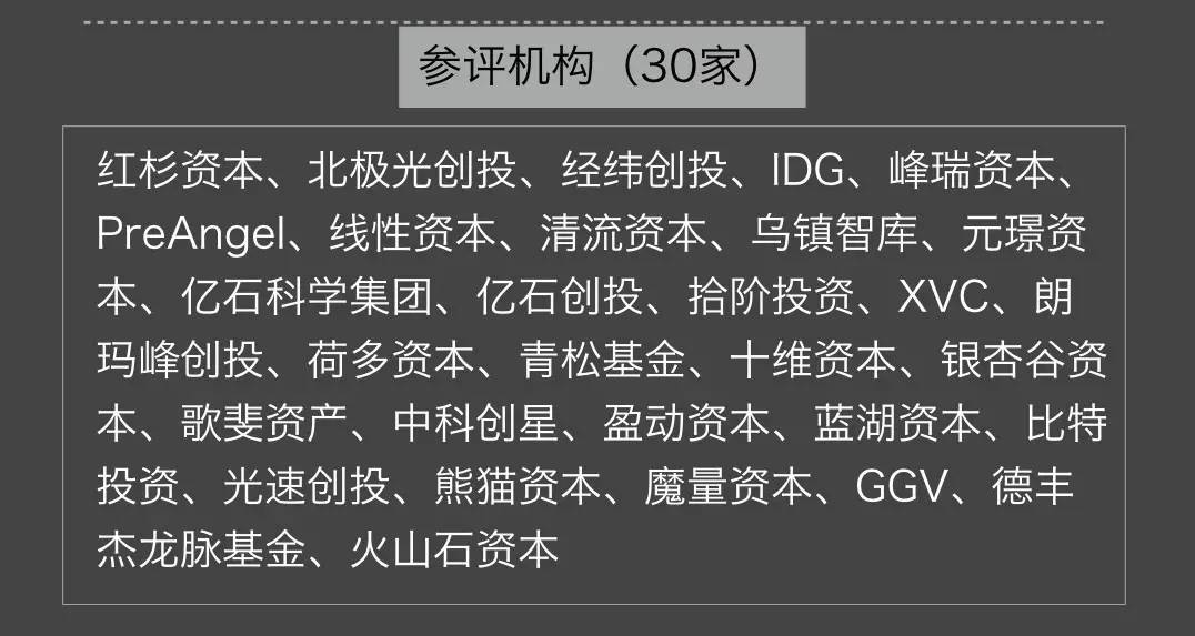 本次评选第一轮筛选主要依据「基础资料透明度」「融资情况」「竞争潜力」三个维度,第二轮采用专家评审投票制,依据如下: