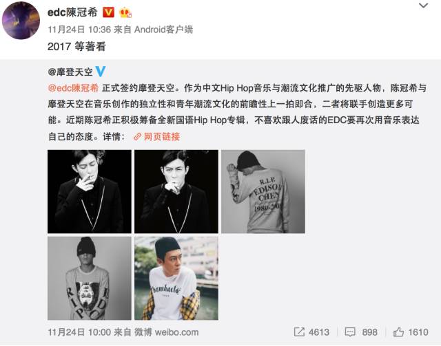 无论是国潮、电影还是hiphop,对于陈冠希,我们也该有新的期待了~