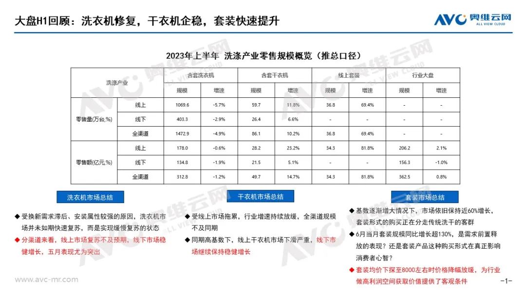 市场大盘概览:洗衣机修复,干衣机企稳,套装高速增长