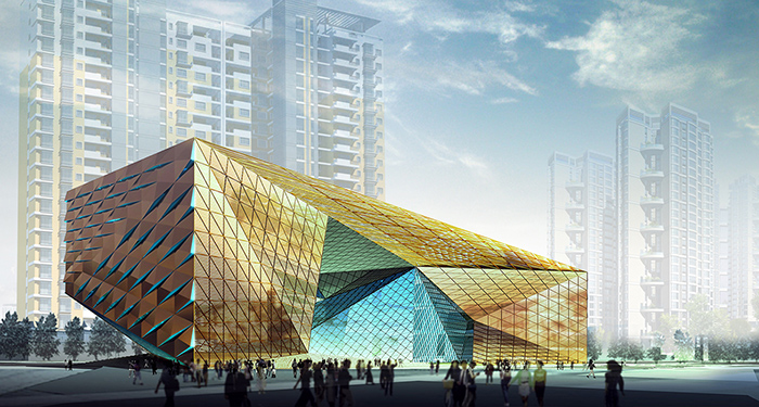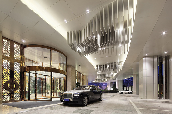 酒店外观,造型受周礼六器之一的玉璋所启发