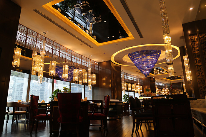 33层酒店空中大堂,头顶灯饰形状灵感来自酒店的俯视图