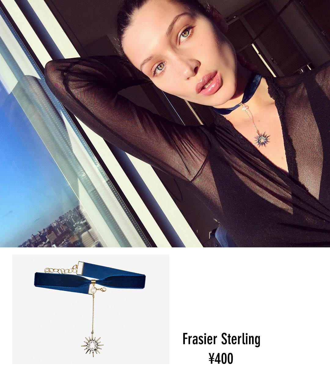 Gigi全身都贵死了,但是总会搭一些相对来说平价的饰品。比如Dior这一套,饰品她只搭了一根300块的丝绒Choker,还抱着让别人误以为没有赞助的风险。