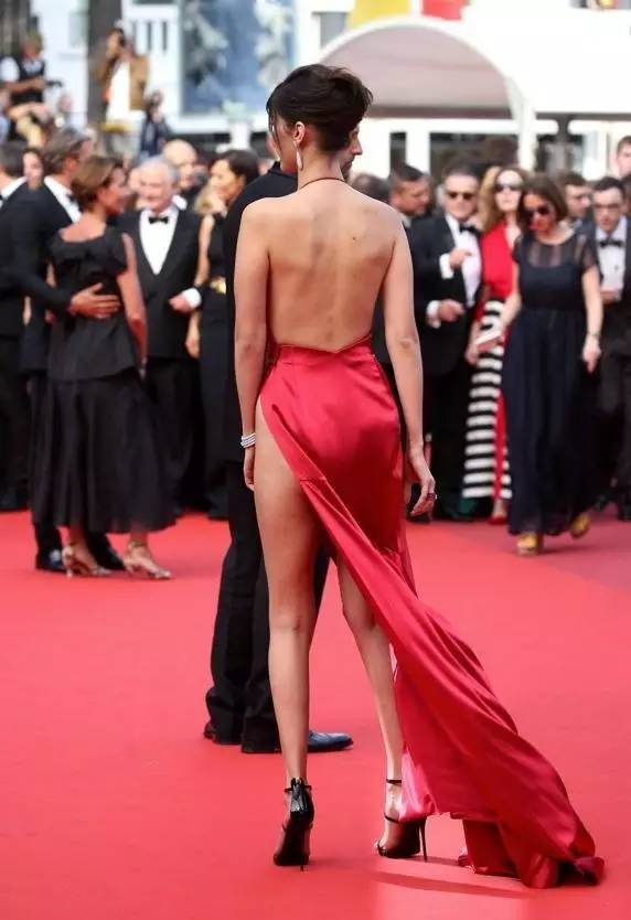 去年的戛纳电影节红毯,Bella露得很大胆,直接开叉到腰了,瞬间爆红。