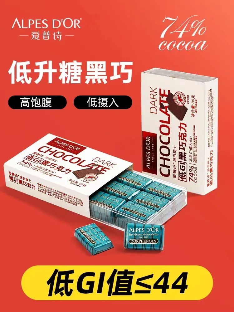 澳大利亚品牌FYTO THE FROG创造出了世界首款全蔗糖配方的低GI儿童牛奶巧克力,同时还减少了一半热量,保留美味又天然健康。瑞士品牌爱普诗ALPESD′OR推出了含甘蔗多酚的低GI黑巧多翡诺DORPHENOLS,GI值仅44,富含的多酚物质还能带来抗氧化的作用。