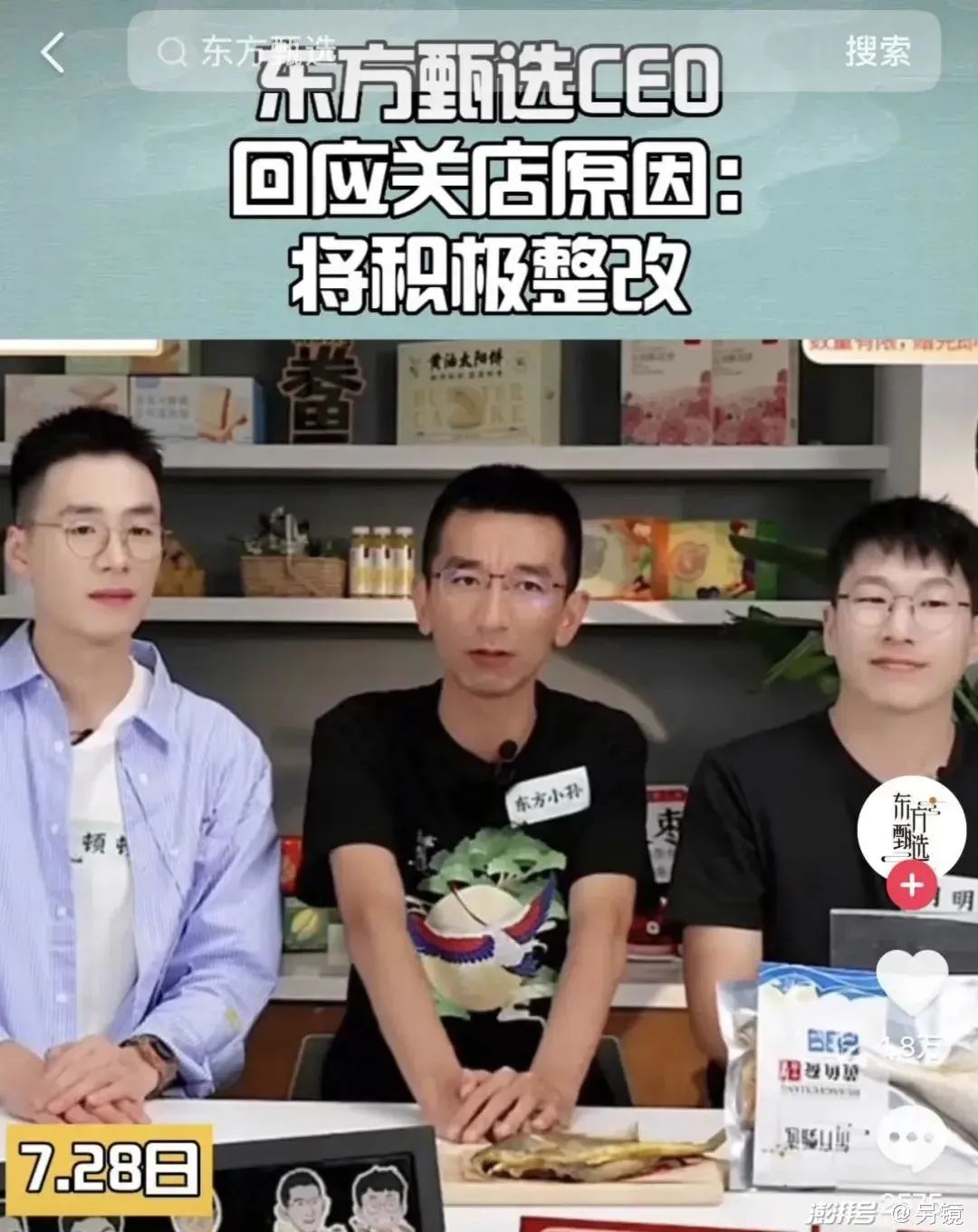 而本月抖音的最大新闻,则是7月26日下午,抖音直播间“东方甄选自营产品”发布停播通知:“因规则要求,26日至29日,东方甄选自营产品店铺以及东方甄选自营产品直播间暂停营业三天”。