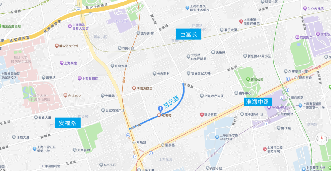 延庆路的两端是安福路和巨富长,更外围的商圈是淮海中路