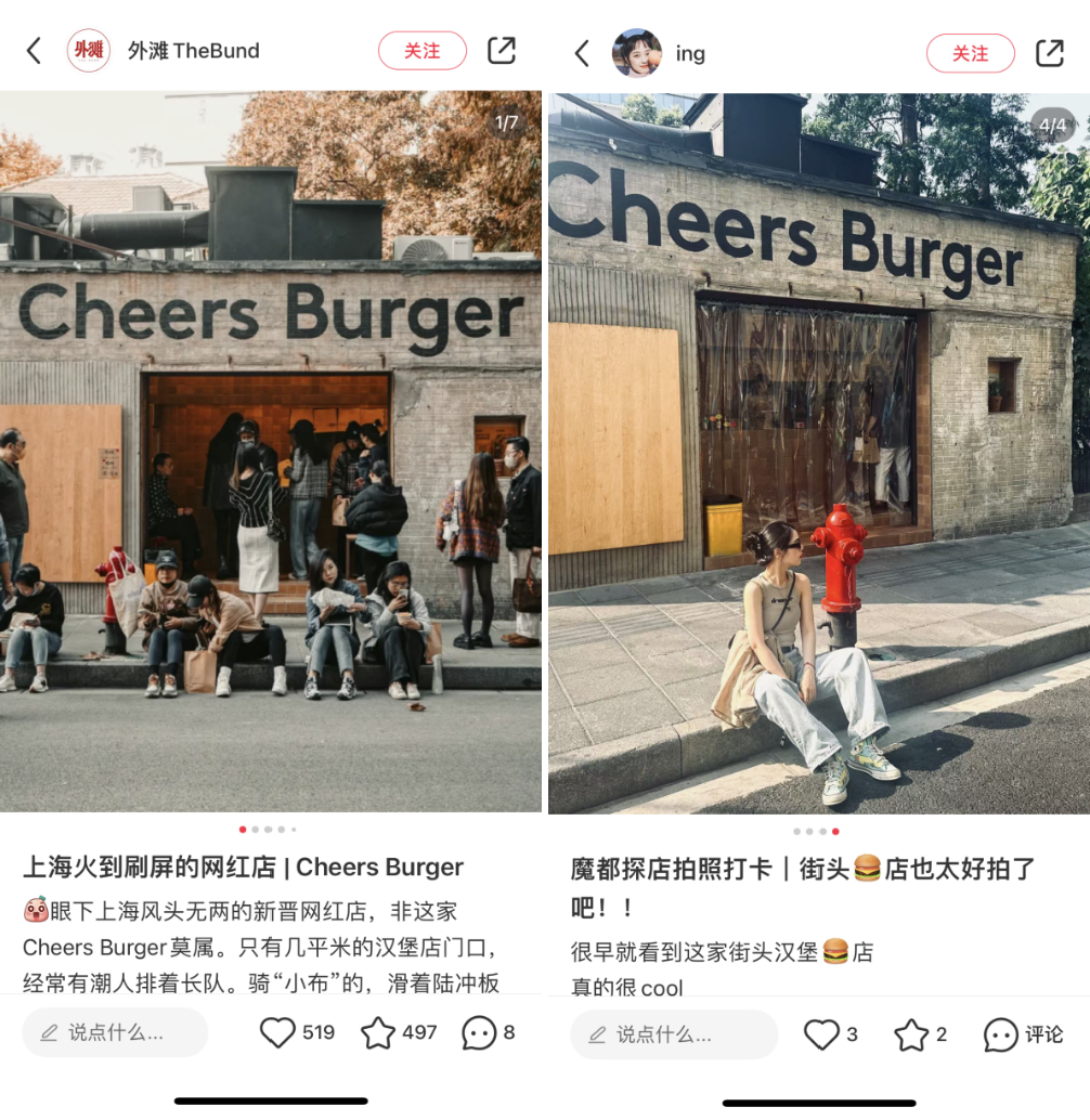 Cheers Burger提供的经验在于,做好门头设计、主动打造有特色的门店体验,让门店具有打卡属性,吸引用户拍照和传播。