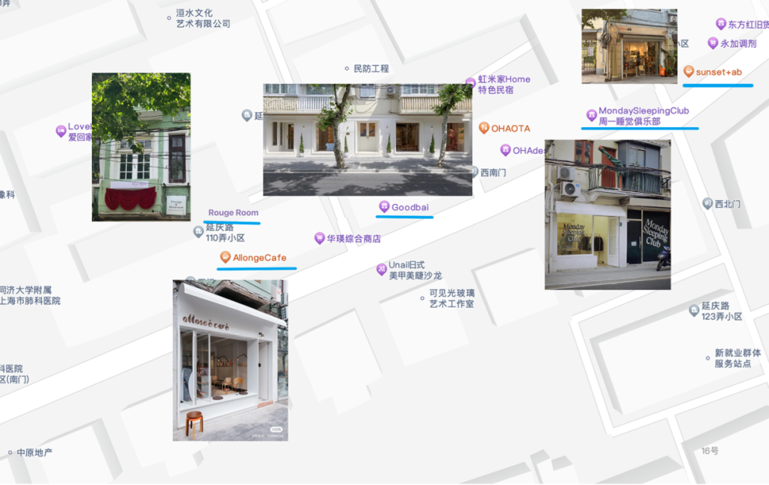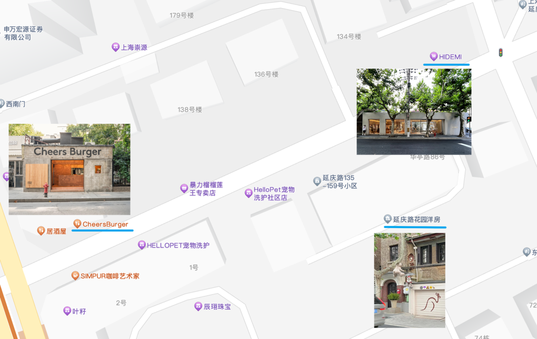 在此基础上,品牌、用户在社交媒体发布的内容就会把门店和街区的风格传播出去,带来流量,就连延庆路上的中介也告诉我们,开店之前可以先像汉堡店一样在网上做好宣传。