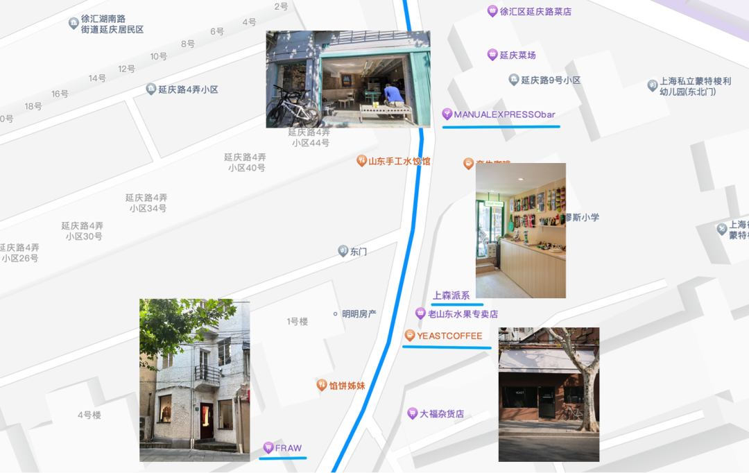 第三是道路的人群基础。过去几年延庆路还陆续开出几家精品咖啡馆——YEAST、Allongé Café、Manual蛮牛, 都各具特色,形成了这条路的人群基础。
