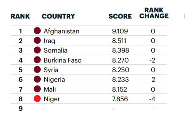 然而,独立智库经济与和平研究所去年公布的“全球恐怖主义指数”报告显示,尼日尔2021年的恐怖主义指数排名高居第八。当年,尼日尔成为全球恐怖袭击致死人数上升最多的国家,比上一年上涨129%至588人。