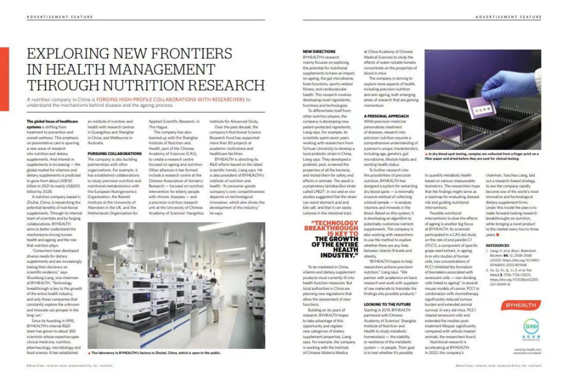 今年6月15日,国际权威科学杂志Nature首次推出中国营养研究增刊,报道了汤臣倍健关于PCC1(原花青素C1)、专利益生菌等多个前沿研究成果。汤臣倍健科学营养战略也得到了全球行业杂志重点关注和认可。
