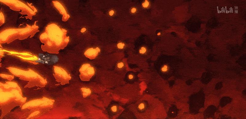 先是用轻微力度的火焰反方向发力逐一躲闪火柱,然后在面临躲闪不及的火柱时蓄力、旋转身体以冲击力突破火柱,身体落地时向后发射火焰以缓冲撞击伤害: