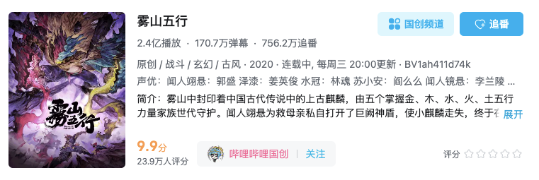 尤其是《雾山五行》这样的2D动画,更高的制作成本和更风格化的表达方式,往往需要大环境繁荣才能带动细分领域的繁荣。