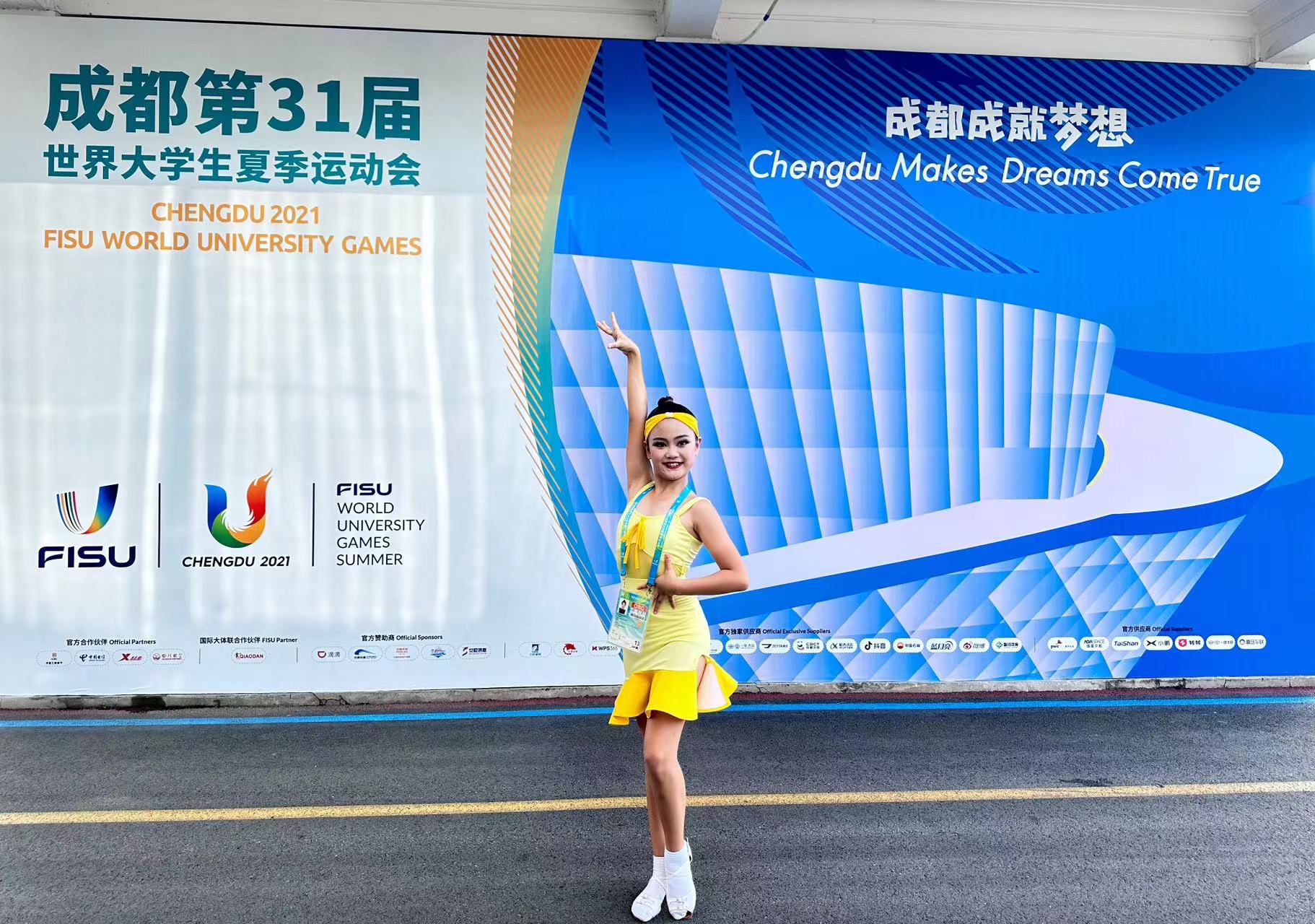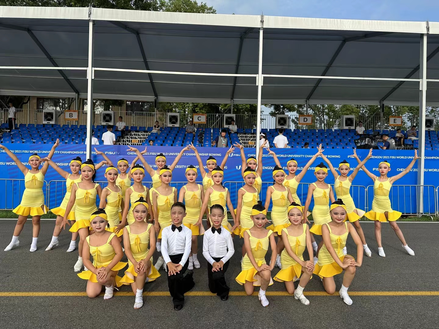 黄色的头巾,雪白的舞鞋,精美的服装……舒展、跳跃、旋转,大运的韵律与脉搏外化出细腻、灵动的肢体语言。8月4日,来自爱德米乐艺术学院的小拉丁舞者们,迎着凌晨五点的晨光,远赴新津赛艇场馆,用竞技舞蹈助力竞技体育,向世界展现成都的热情与底蕴,展示中国少年的朝气蓬勃。