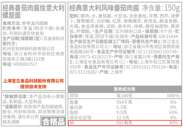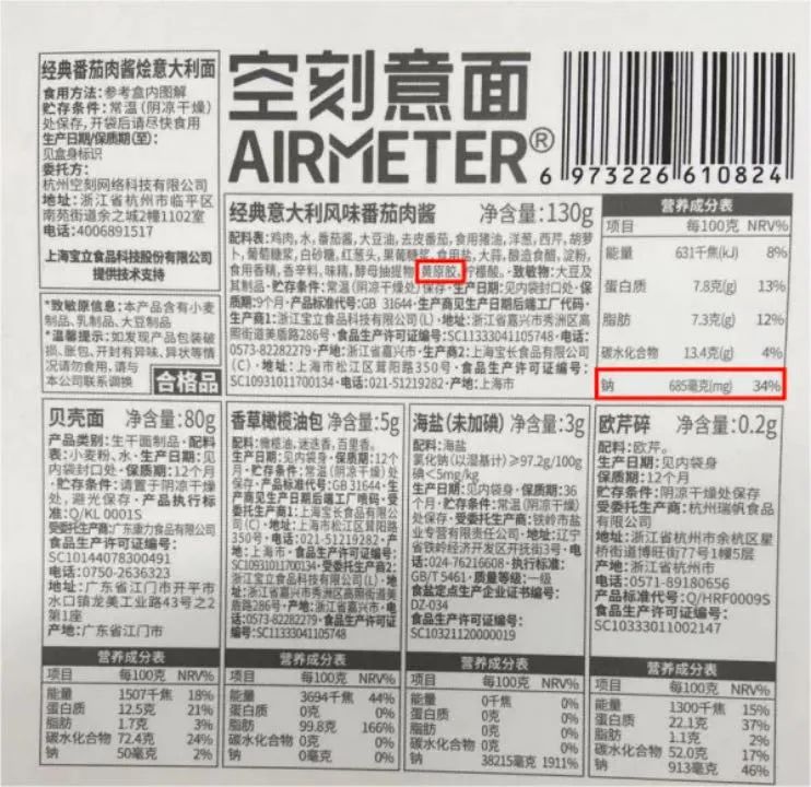 针对儿童推出的意面产品,精致宝妈们首先要关注的是钠指标。