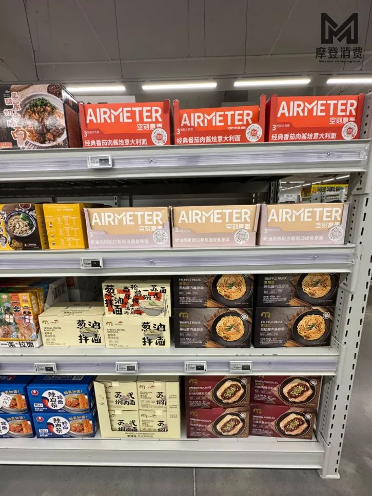 而在空刻意面下方就陈列着麦德龙自有品牌“麦甄选”推出的黑松露肉酱意面,不仅口味相比空刻意面更为特别,价格还更便宜——四人份售价65.9元,230g单包售价16.48元,平均售价0.072元/g。