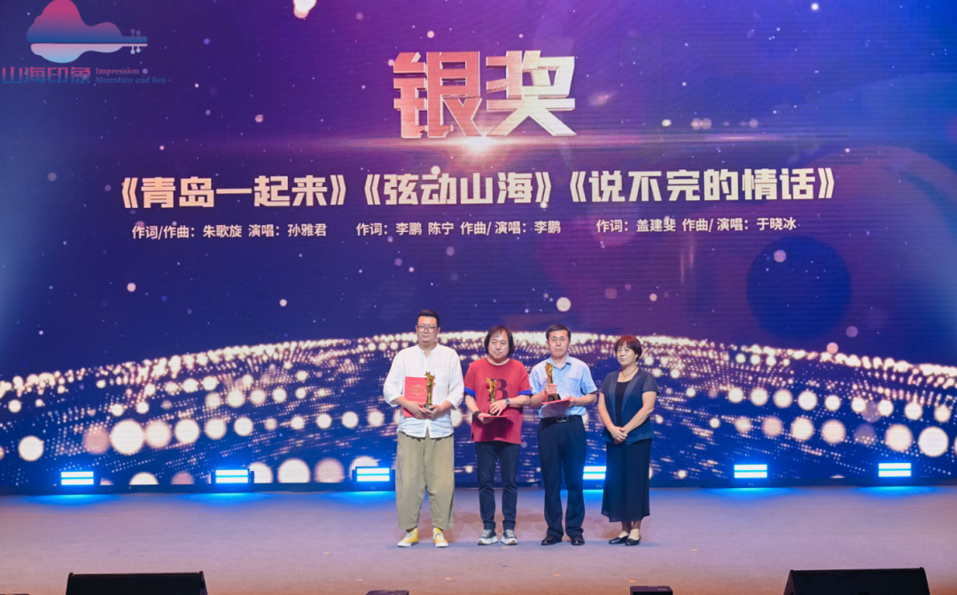 (银奖作品朱歌旋《青岛一起来》、李鹏《弦动山海》、盖建斐《说不完的情话》领奖)