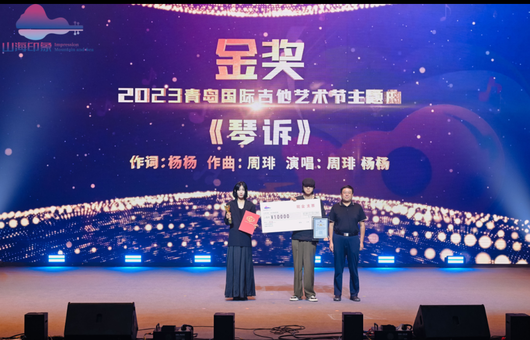 在当晚的首发仪式中,青岛·山海印象2023原创歌曲征集金奖得主周琲和杨杨创作的《琴诉》获得这一殊荣,作品展示了民谣与中国风融合的魅力,描绘了山海与吉他艺术的优美立体画卷。