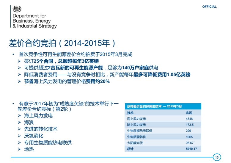柯林娜还透露,英国政府已经有了削减可再生能源补贴的计划,尤其是对于陆上风电、太阳能发电项目等不是非常具有竞争力的成熟技术,相关企业需要降低成本。