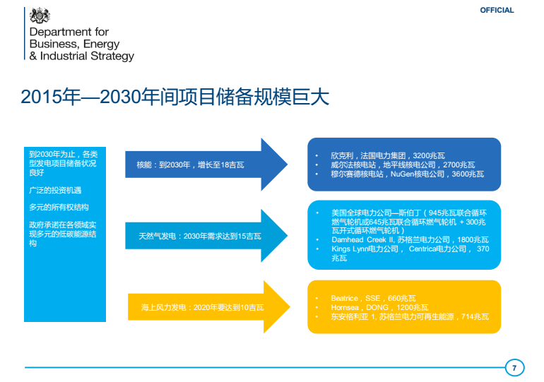 她也指出除了天然气发电,新建的核电站项目和海上风电项目也会替代一部分产能。据《英国能源生产展望报告》显示,截至2030年英国核电的需求将增至18吉瓦,届时天然气发电的需求将达到15吉瓦,而到2020年海上风力发电将达到从现在的6吉瓦达到10吉瓦。“如果成本不断下降,也许到2030年海上风力发电会达到20吉瓦的产能。”柯林娜表示。