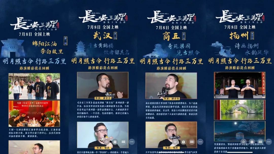 而宣传一部承载了如此多文化底蕴的“文化产品”,既要抵达更多观众,又要不失文化内涵。换句话说,“文化产品”抵达更多下沉观众的方式,是有下限的,擦边、卖腐等都是不被允许的。令人意外的是,《长安三万里》宣发真能另辟蹊径,开创了一种“血脉觉醒”的新文化宣传模式。
