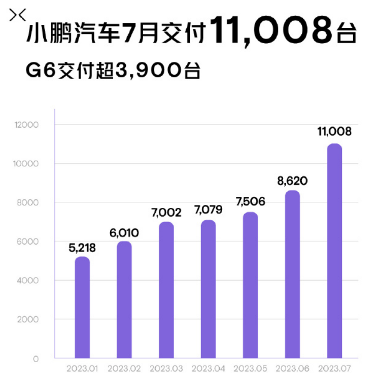 经历漫长的缓慢复苏,小鹏7月销量终于破万。小鹏7月交付1.1万辆,环比增长27.7%,已持续6个月环比正增长。今年1-7月,小鹏累计交付5.24万辆。