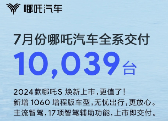 哪吒7月交付10,039辆,同比下滑28.4%,环比下滑17.3%,是6家破万的新势力中唯一同比、环比下滑的,若后续持续如此走势,似乎有掉队的风险。今年1-7月,哪吒累计交付7.25万辆,历史累计交付超32万辆。