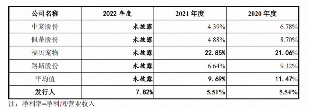而乖宝的“创伤”在于净利润。招股书显示,报告期内乖宝的净利润分别为26687万元、14027万元、11148万元,净利率为5.54%、5.51%、7.82%。以2020年做对比,中宠、佩蒂、福贝、路斯的净利率分为6.78%、8.70%、21.06%、9.32%。