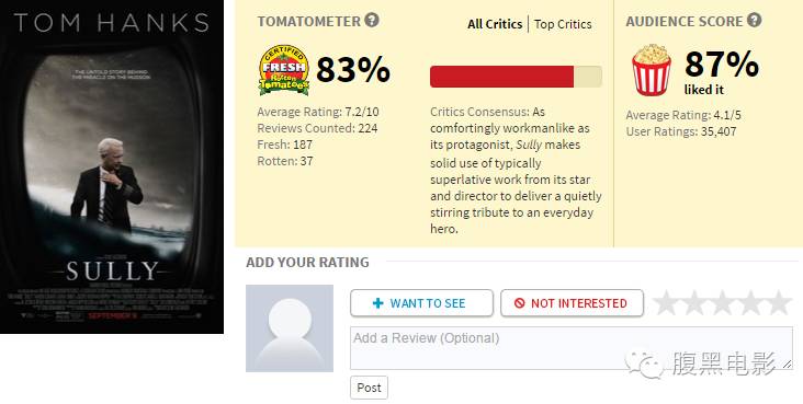 而烂番茄新鲜度只有83%,腹黑君以为怎么也要90%以上的。