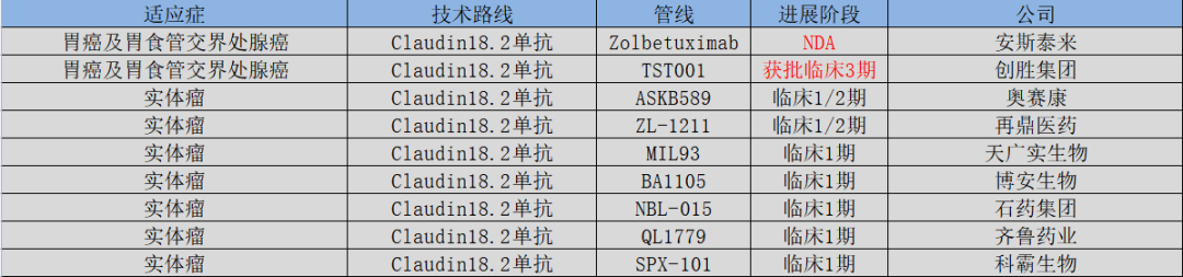 图:CLDN18.2单抗药物竞争格局,来源:锦缎研究院
